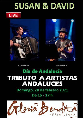 FRIGILIANA – Het duo Susan & David treedt zondagmiddag 28 februari op bij restaurante Gloria Bendita in Frigiliana. Deze is gevestigd aan de Plaza de Las Tres Culturas.