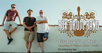 NERJA – The Box Drum Band treedt zaterdag 6 maart op bij Fitzgerald’s Bar in Nerja, op de hoek van park Verano Azul onder het pand van de SuperSol-supermarkt in Nerja.