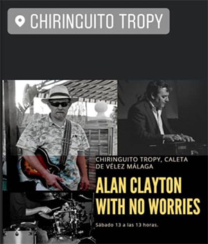 CALETA DE VELEZ – In de kustplaats Caleta de Velez treedt zaterdagmiddag 13 maart de Britse gitarist Alan Clayton op. Dit gebeurt bij Chiringuito Tropy, vlakbij de jachthaven van Vélez-Málaga, Puerto Caleta de Velez.