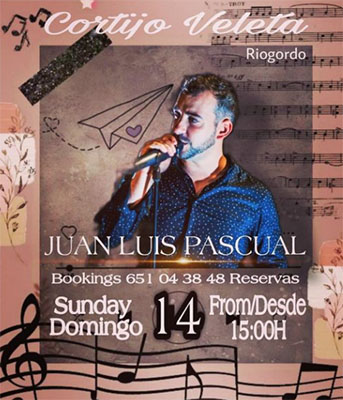 RIOGORDO – De in de regio rond Nerja veel optredende Spaanse zanger Juan Luis Pascual Sanchez is zondag 14 maart te zien en te beluisteren in het dorp Riogordo, op zo’n dertig kilometer landinwaarts vanaf Vélez-Málaga.
