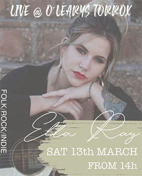 TORROX – De Britse zangeres Ella Ray treedt zaterdagmiddag 13 maart op in de kustplaats Torrox, op circa tien kilometer van Nerja gelegen. Ray is dan te beluisteren bij O’Leary’s Irish Bar aan de Paseo Maritimo de Ferrara.