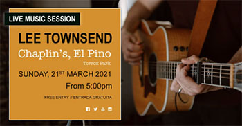 TORROX – Bij bar/restaurant Chaplin’s in Torrox treedt zondagmiddag 21 maart de zanger/gitarist Lee Townsend op.