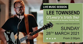 TORROX – De Britse zanger/gitarist Lee Townsend treedt zondagmiddag 28 maart op bij O’Leary’s Bar aan de Paseo Maritimo de Ferrara in Torrox-Costa. Het optreden begint om circa 14.00 uur, de entree is gratis.
