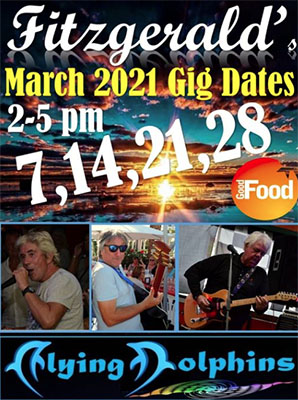 NERJA – De band The Flying Dolphins treedt zondag 28 maart op bij Fitzgerald’s Bar, op de hoek van park Verano Azul (Calle Antonio Ferrandis Chanquete) onder het pand van de Super Sol-supermarkt in Nerja.