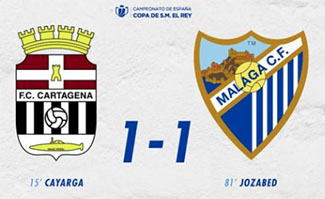 Cartagena, de nummer twintig van de competitiestand, nam in het eigen Cartagonova-stadion vrij vroeg in de wedstrijd de leiding na een doelpunt van Alberto Cayarga (veertiende minuut). Málaga joeg vervolgens lang tevergeefs op de gelijkmaker. Die kwam er uiteindelijk negen minuten voor tijd dankzij de middenvelder Jozabed Sánchez: 1-1.