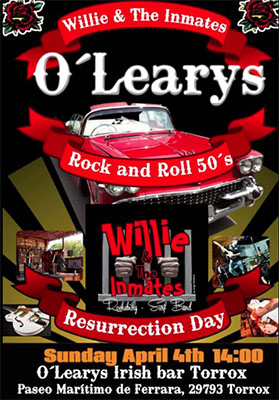 TORROX – Bij O’Leary’s Irish Bar aan de Paseo Maritimo de Ferrara in Torrox-Costa treedt zondag 4 april de rock’n roll-band Willie & The Inmates op.