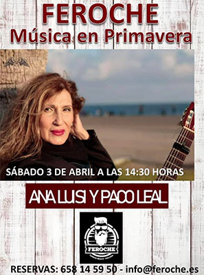 TORROX – Bij restaurant Feroche in de kustplaats Torrox staat zaterdagmiddag 3 april een optreden geprogrammeerd van het duo Ana Lusi y Paco Leal. Het optreden begint rond 14.30 uur.