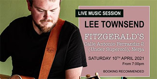 NERJA – De Britse gitarist en zanger Lee Townsend treedt zaterdag 10 april op bij Fitzgerald’s Bar, op de hoek van park Verano Azul (Calle Antonio Ferrandis Chanquete) onder het pand van de SuperSol supermarkt in Nerja. Het optreden begint rond de klok van 19.00 uur.