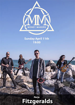 NERJA – Bij Fitzgerald’s Bar in Nerja treedt zondagavond 11 april de band MoneyMakers op. De livemuziek begint rond 19.00 uur en duurt tot circa 22.00 uur.