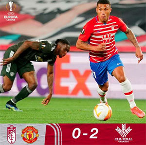 Na een half uur spelen nam Manchester de leiding via een fraaie treffer van Marcus Rashford. Granada drong daarna wel voorzichtig aan met een reeks schoten van afstand maar de ervaren Britse formatie gaf de winst niet uit handen. In de slotminuut liep Manchester United zelfs uit naar 0-2, toen Bruno Fernandes een makkelijk gegeven strafschop benutte. Volgende week gaat Granada CF op bezoek bij Manchester United voor de return.