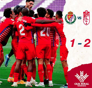 VALLADOLID – Met een doelpunt vlak voor tijd besliste voetbalclub Granada CF zondagavond 11 april het voetbalduel in de Spaanse Primera División tegen Real Valladolid in het eigen voordeel: 1-2. De Andalusische formatie, bezig aan een druk seizoen en momenteel ook nog actief in de Europa League, keek in de uitwedstrijd lang tegen een 1-0 achterstand aan en zette deze in de laatste twaalf minuten alsnog om in een positief resultaat.