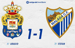 Vijf minuten voor het laatste fluitsignaal zag de Málaga-defensie bij een hoekschop de Argentijn Sergio Araujo volledig over het hoofd, waarop deze volledig vrijstaand de gelijkmaker kon binnen knikken: 1-1. Een tweede treffer van Las Palmas, diep in de blessuretijd, werd afgekeurd wegens buitenspel waardoor beide ploegen één punt overhielden aan het onderlinge treffen.