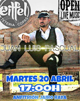 VELEZ-MALAGA – Bij bar Sala Eiffel in de kustplaats Vélez-Málaga staat dinsdag 20 april een optreden gepland van de Spaanse zanger Juan Luis Pascual Sanchez.