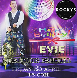 NERJA – De Spaanse zanger Juan Luis Pascual Sanchez treedt vrijdag 23 april op bij Rocky’s Bar in Nerja. Het optreden begint rond de klok van 16.00 uur.