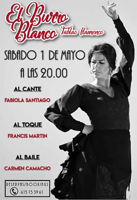 NERJA – Een spectaculaire flamencoshow is zaterdagavond 1 mei te zien in bar El Burro Blanco in het centrum van Nerja. Daar treedt de flamencodanseres Carmen Camacho op vanaf circa 20.00 uur.
