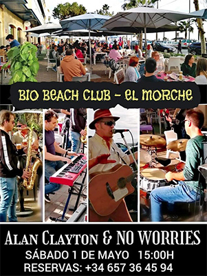 EL MORCHE – De Britse gitarist Alan Clayton treedt zaterdagmiddag 1 mei met zijn band op in de kustplaats El Morche. Dit gebeurt bij de Bio Beach Club aan de Paseo Marítimo 5 in El Morche.