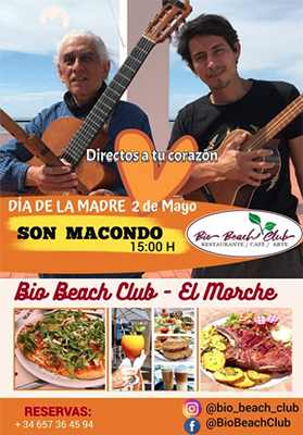 EL MORCHE – De formatie Son Macondo treedt zondagmiddag 2 mei op in de kustplaats El Morche. Dit gebeurt bij de Bio Beach Club aan de Paseo Marítimo 5 in El Morche.