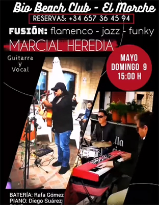 EL MORCHE – De gitarist Marcial Heredia treedt zondagmiddag 9 mei op in de kustplaats El Morche. Dit gebeurt bij de Bio Beach Club aan de Paseo Marítimo 5 in El Morche.