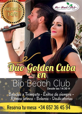 EL MORCHE – Het Dúo Golden Cuba treedt vrijdagmiddag 14 mei op in de kustplaats El Morche. Dit gebeurt bij de Bio Beach Club aan de Paseo Marítimo 5 in El Morche.