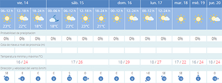 De meteorologen van het weerstation Aemet (Agencia Estatal de Meteorología) voorzien de komende dagen vooral véél zon aan de Costa de Sol. De wind laat het daarbij afweten terwijl de kans op neerslag volgens de weerkundigen nihil is.