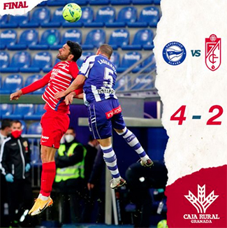 In het Estadio Mendizorrotza van Vitoria Gasteiz liet Alavés zondagavond vanaf de aftrap weinig heel van illusies van Granada. Al na acht minuten voetbal werd de openingstreffer opgetekend, welke op naam kwam van middenvelder Pere Pons. Een klein kwartier later verdubbelde Rubén Duarte de marge: 2-0. Na een half uur spelen zorgde Jorge Molino voor de aansluitingstreffer namens de bezoekers, waardoor de rust werd gehaald met een 2-1 tussenstand.
