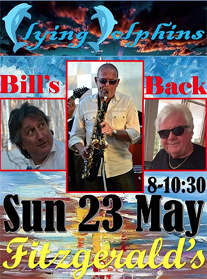 NERJA – De lokaal vermaarde band The Flying Dolphins treedt zondag 23 mei op bij Fitzgerald’s Bar, op de hoek van park Verano Azul (Calle Antonio Ferrandis Chanquete) onder het pand van de SuperSol-supermarkt in Nerja.