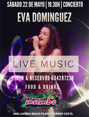 NERJA – Bij Chiringuito Mambo in Torrox is zaterdagavond 22 mei een optreden van de zangeres Eva Dominguez voorzien.