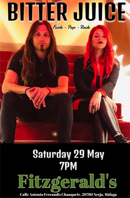 NERJA – De Argentijnse soulband Bitter Juice treedt zaterdag 29 mei bij Fitzgerald’s Bar, op de hoek van park Verano Azul onder het pand van de SuperSol-supermarkt in Nerja.