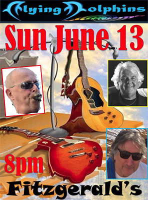 NERJA – De band The Flying Dolphins treedt zondagavond 13 juni op in Nerja bij Fitzgerald’s Bar, op de hoek van park Verano Azul (Calle Antonio Ferrandis Chanquete) onder het pand van de SuperSol-supermarkt.