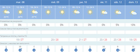 NERJA – De meteorologen van het weerstation Aemet (Agencia Estatal de Meteorología) verwachten de komende week veel zon en gemiddelde dagtemperaturen van iets boven de 25 graden Celsius rond Nerja. Van neerslag is vooralsnog geen sprake, ook de wind laat het afweten in de meest recente voorspellingen.