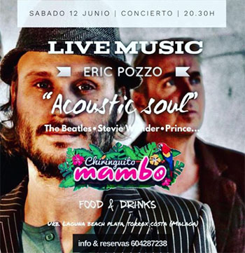 Het optreden begint rond 20.30 uur, Chiringuito Mambo is te vinden aan de Avenida de la Costa del Sol in de kustplaats Torrox (zo’n tien kilometer onder Nerja). Pozzo brengt met zijn show ‘Acoustic Soul’ voornamelijk jazz-, pop-, rock- en soulmuziek ten gehore.