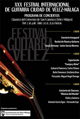 VELEZ-MALAGA – De dertigste editie van het Festival Internacional de Guitarra Ciudad de Vélez-Málaga speelt zich van vrijdag 2 tot en met 4 zondag juli af in Vélez-Málaga, op een kleine twintig kilometer van Nerja.