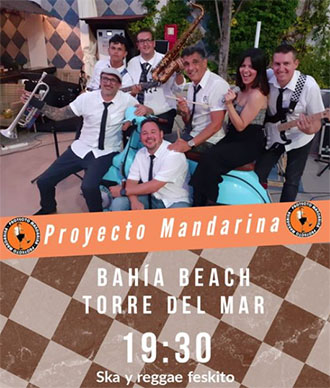 TORRE DEL MAR – De regionaal vermaarde en populaire ska- en reggaeband Proyecto Mandarina speelt zondag 13 juni bij bar Bahía Beach aan de Paseo Marítimo in de kustplaats Torre del Mar, tussen Nerja en Málaga.