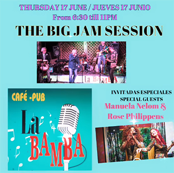 Het optreden begint rond de klok van 18.30 uur en duurt tot circa 23.00 uur. Bar La Bamba is te vinden aan de Cruzado Los Caminos in La Viñuela.