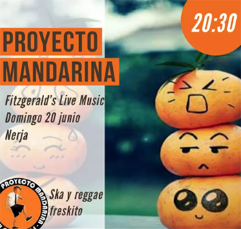 NERJA – De band Proyecto Mandarina speelt zondagavond 20 juni bij Fitzgerald’s Bar, op de hoek van park Verano Azul (Calle Antonio Ferrandis Chanquete) onder het pand van de SuperSol-supermarkt in Nerja.