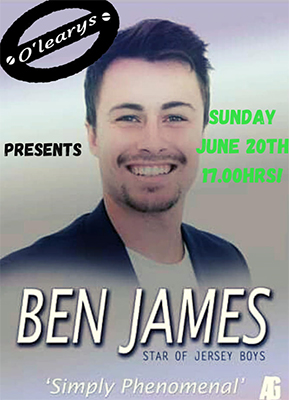 TORROX – De Britse zanger/gitarist Ben James treedt zondag 20 juni op bij O’Leary’s Irish Bar in de kustplaats Torrox. Het optreden begint rond de klok van 17.00 uur.