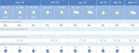 NERJA – Nerja en omgeving staat een week te wachten met véél zon en gemiddelde dagtemperaturen van circa 25 graden Celsius. Dit voorzien de meteorologen van het weerstation Aemet (Agencia Estatal de Meteorología) in hun meest recente weersvoorspellingen.