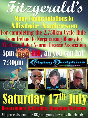 Het optreden begint rond de klok van 19.30 uur. Eerder die dag, rond de klok van 17.00 uur, is er een barbecue bij Fitzgerald´s (onder het motto ´All you can eat´ voor de prijs van 10 euro per persoon) waarbij de opbrengsten bestemd zijn voor de zogeheten ´Irish Motor Neuron Disease Association´. Daarbij wordt een welkomstparty gehouden voor Alistair Anderson, die om geld in te zamelen voor dit goede doel momenteel een fietstocht van 2.750 kilometer aflegt tussen het Ierse Dublin en Nerja.