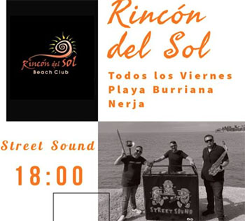 NERJA – Op het strand van Playa Burriana in Nerja staat vrijdagavond 16 juli een optreden van de band Street Sound op het programma bij Beach Club Rincón del Sol (op het uiteinde van het strand).