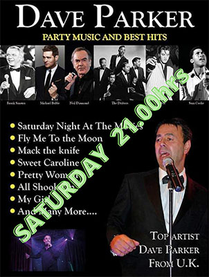 De show begint rond 21.00 uur en duurt tot circa 23.30 uur. Parker brengt vooral soul-, swing- en rock’n’roll-muziek ten gehore en is in de Axarquía-regio vooral bekend vanwege zijn Neil Diamond Tributes.