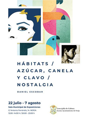 De expositie met vijftig werken, onder de titel ´Habitats / Azúcar, canelo y clavo / Nostalgia´, is dagelijks te bezoeken van 12.00 tot 14.00 uur en van 20.00 tot 23.00 uur. De Sala Municipal de Exposiones is te vinden aan de Calle Cristo (officieel Calle Almirante Ferrandiz geheten) 14, even boven het postkantoor in het centrum van Nerja.