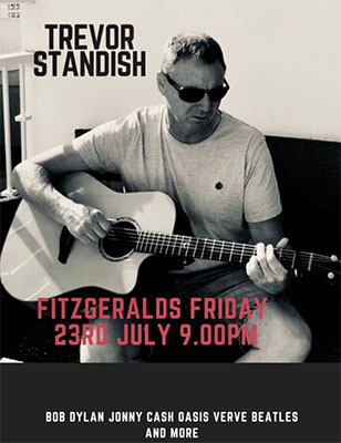 NERJA – De Britse gitarist en zanger Trevor Standish treedt vrijdagavond 23 juli op bij Fitzgerald’s Bar, op de hoek van park Verano Azul onder het pand van de SuperSol-supermarkt in Nerja.