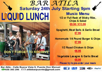 PUENTE DON MANUEL – De formatie Liquid Lunch treedt zaterdagavond 24 juli op bij bar Atila in het plaatsje Puente Don Manuel, naast het meer van Viñuela (iets boven Vélez-Málaga).