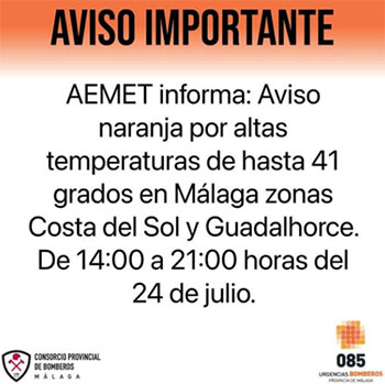 Weercode oranje wegens extreme warmte rond Nerja NERJA – Het weerstation Aemet (Agencia Estatal de Meteorología) heeft een ´Code Oranje´ afgegeven voor zaterdagmiddag 24 juli. Daarbij waarschuwen de meteorologen voor extreem hoge temperaturen, waarbij het kwik kan oplopen tot 41 graden Celsius. Delen: Klik om te delen op X (Opent in een nieuw venster) X Klik om te delen op Facebook (Opent in een nieuw venster) Facebook Vind-ik-leuk Aan het laden...