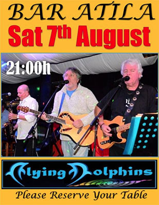 PUENTE DON MANUEL – De formatie Flying Dolphins treedt zaterdagavond 7 augustus bij bar Atila in het plaatsje Puente Don Manuel, naast het meer van Viñuela (iets boven Vélez-Málaga).