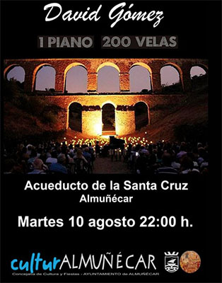 Open lucht piano-concert bij Aquaduct Almuñécar ALMUNECAR – De pianist en componist David Gómez verzorgt dinsdagavond 10 augustus een open lucht concert in het Acueducto de la Santa Cruz van de kustplaats Almuñécar. Het concert, onder de naam ´Un piano y 200 velas´ begint om 22.00 uur. Delen: Klik om te delen op X (Opent in een nieuw venster) X Klik om te delen op Facebook (Opent in een nieuw venster) Facebook Vind-ik-leuk Aan het laden...