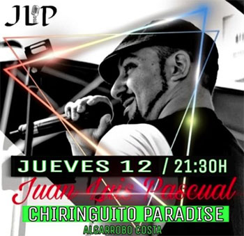 ALGARROBO – De zanger Juan Luis Pascual Sanchez treedt donderdagmiddag 12 augustus op bij Chiringuito Paradise in de kustplaats Algarrobo.