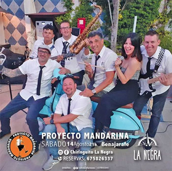 La Negra is gevestigd aan de Paseo Marítimo Benajarafe, het optreden begint rond 21.00 uur en is gratis toegankelijk. De uit Nerja afkomstige formatie Proyecto Mandarina brengt voornamelijk ska- en reggaemuziek ten gehore.
