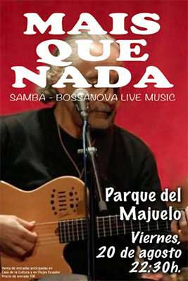 ALMUNECAR – In het stadspark El Majuelo van de kustplaats Almuñécar is vrijdagavond 20 augustus een concert te beluisteren van de band Mais Que Nada. Dit begint om circa 22.30 uur en duurt ongeveer anderhalf uur.