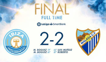 De Pool Mateusz Bogusz zette zijn club, die pas in 2015 werd opgericht en de licentie overnam van het failliet verklaarde SE Eivissa, na negentien minuten op een 1-0 voorsprong. Na een kwartier spelen in de tweede helft verdubbelde Bogusz de marge, twee minuten later deed José Luis Muñoz voor Málaga wat terug; 2-1. Vlak voor tijd redde Roberto Fernández met zijn treffer een punt voor Málaga.